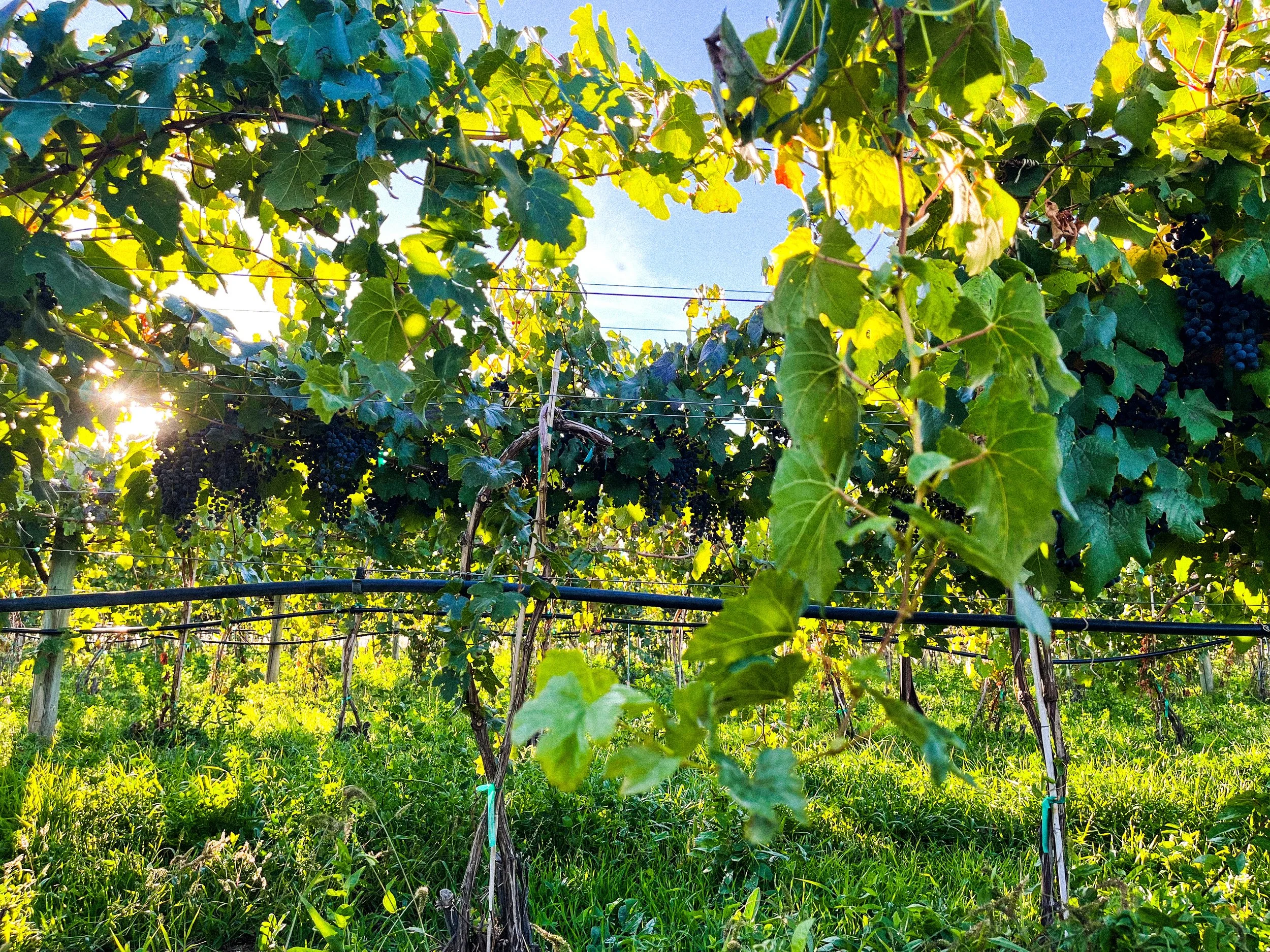 TODAY, TEN ACRES OF VINES GROW HERE IN A LIVING BALANCE. OUR FOUR VARIETALS—PETIT VERDOT, CABERNET FRANC, CABERNET SAUVIGNON, AND SAUVIGNON BLANC—ARE SURROUNDED BY COVER CROPS, WITH DOMESTIC AND WILD ANIMALS ALIKE MOVING FREELY THROUGH THE PROPERTY. WE FARM WITH MINIMAL INTERVENTION AND NO PESTICIDES SINCE 2022, AND ARE WORKING TOWARD BIODYNAMIC CERTIFICATION. OUR AIM IS TO LET LIFE IN ALL ITS VIBRANT DIVERSITY DO MUCH OF THE WORK OF THE FARM.